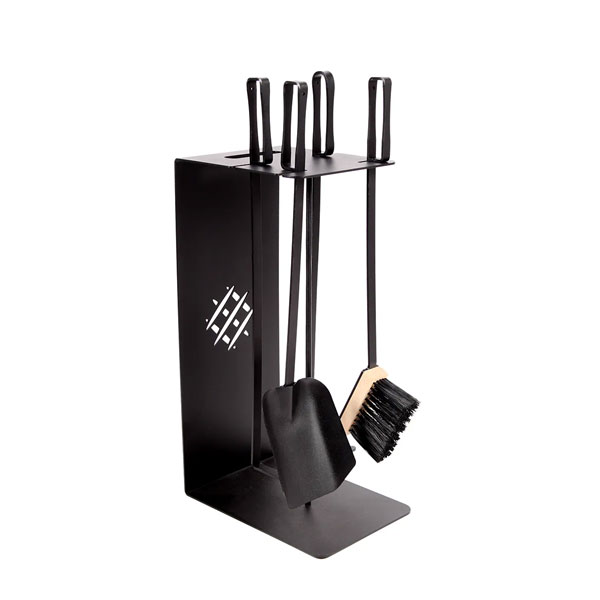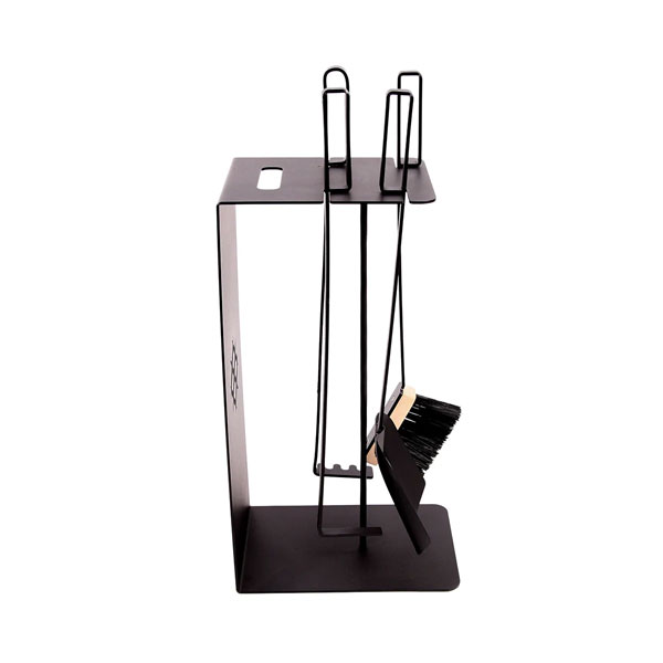 - В комплекте: две кочерги (одна представлена в форме грабель), совок и щетка.