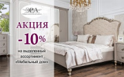 Вы можете приобрести определенные модели мягкой и корпусной мебели в классическом стиле от ООО «Мебельный дом» (фабрика «Эра», РФ) со скидкой 10% при условии полной оплаты.