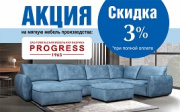 будет действовать скидка при покупке в размере 3% на мягкую мебель производства ОАО «Гомельская фабрика «Прогресс» при условии полной оплаты.