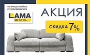 действует скидка 7% при покупке мягкой мебели производства СООО «Лама-мебель» при условии полной оплаты.